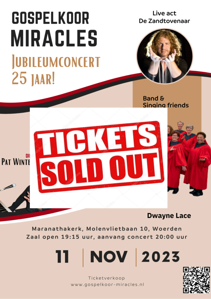 “Jubileumconcert op 11 november: Alle tickets uitverkocht, bedankt voor de geweldige respons!”Tot zaterdag 11 november!